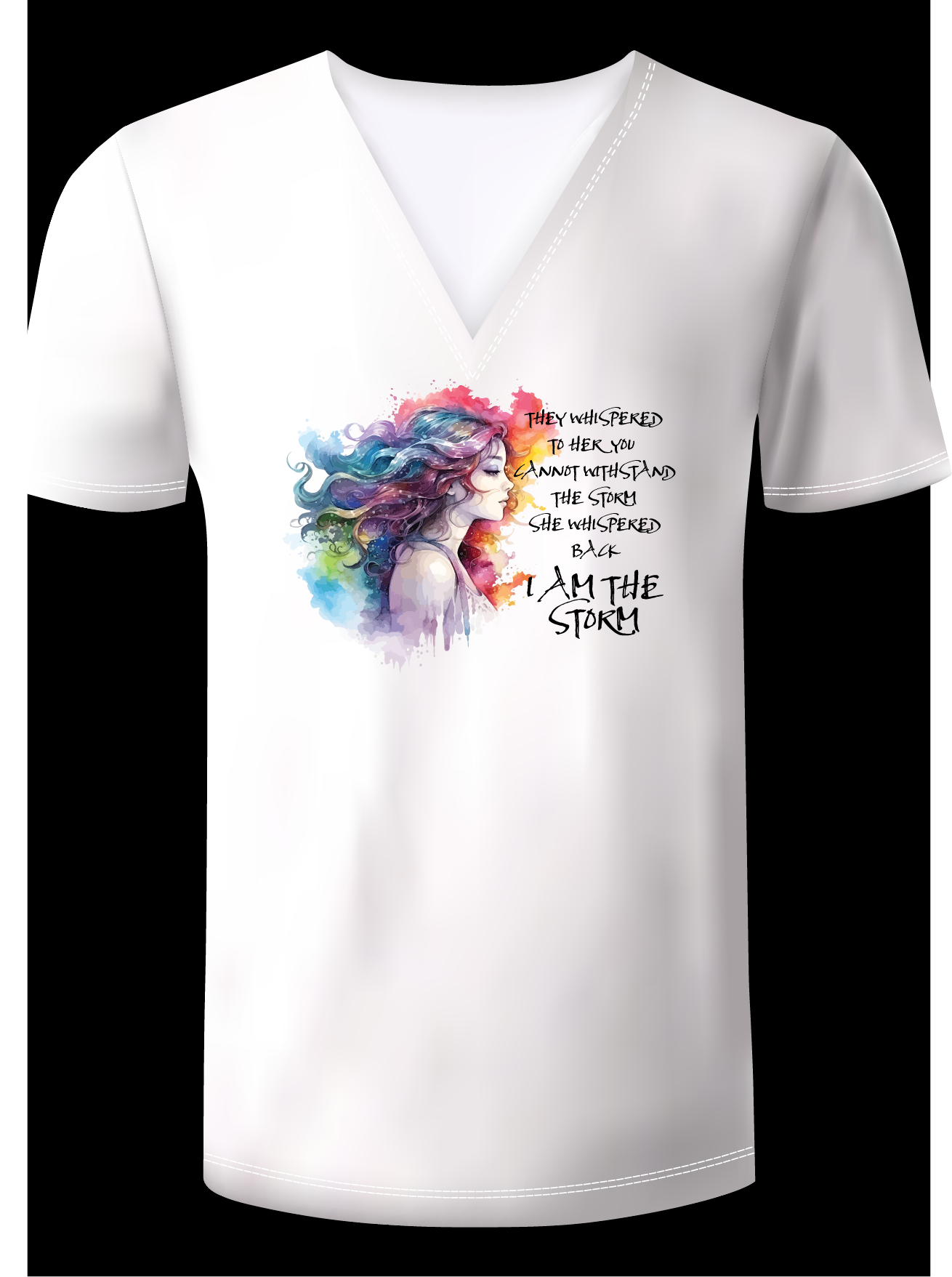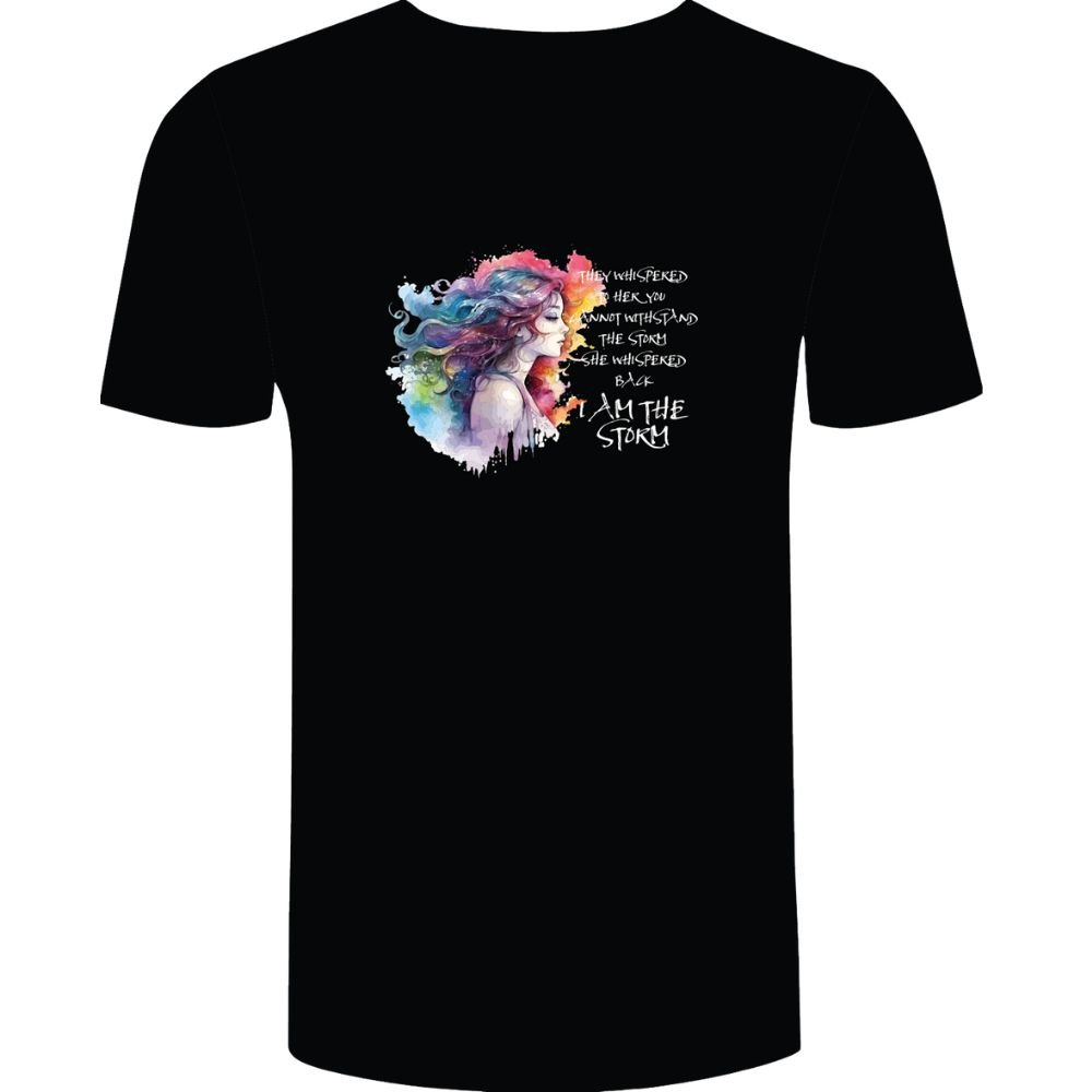 Fierce, feminine, and unapologetically bold. This stunning tee features a watercolour-style portrait and empowering quote: “They whispered to her, you cannot withstand the storm. She whispered back, I am the storm.” Printed in vibrant DTF on soft black organic cotton, it’s a powerful reminder to own your strength.